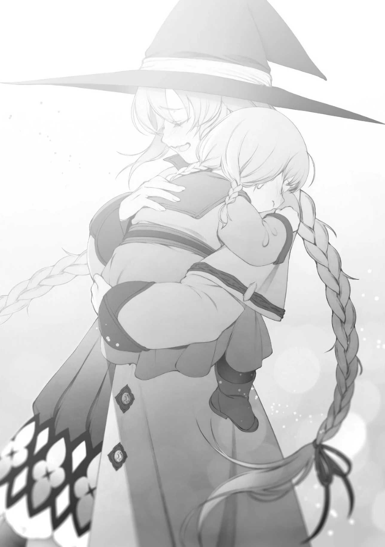 In the last chapter, Lara and Leo leave the house, searching a place with high concentration of mana and promising to Sylphy and Roxy that she is going to back with a boy (Rudeus and Eris will be dead when she comes back). Before she parts, Sylphy gives her cuisine recipes, Eris gives her a knife amulet, Roxy gives her her old hat and Rudeus gives her his 『Arrogant Water Dragon King』, she also takes an old robe of Rudeus.