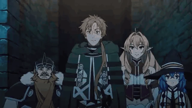 The party leaves the Teleportation Labyrinth and upon reaching the outside, they discuss what supplies they need for to deal with the armored enemies while Rudeus is wondering if Zenith will be okay with the pace they are going but notices Roxy looks at him but immediately looks away.
